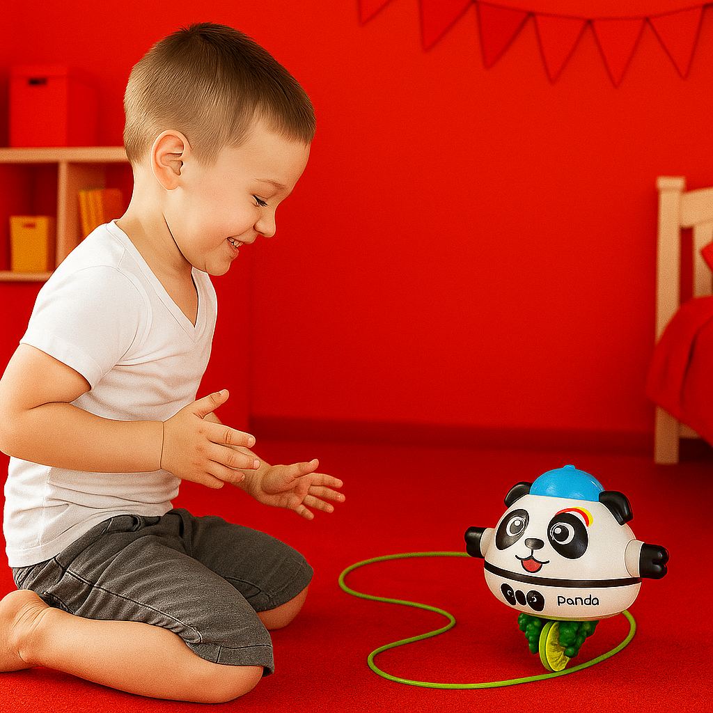 Оваа панда бара од детето да го следи нејзиното движење, да ја постави на конецот и да ја следи со внимание. Со тоа, природно се развива фина моторика, фокус, рамнотежа и просторна ориентација – сè преку игра!