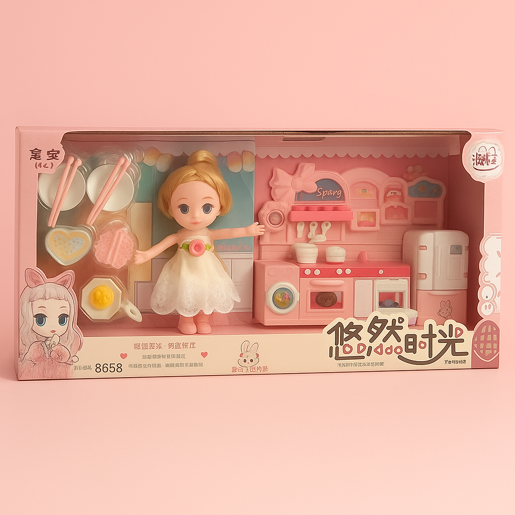 Секоја мала принцеза сака да има своја кукла, кујна и вкусни „торти“ за да сервира. Со овој сет, играта станува уште поинтересна и реалистична! 🍰👧
